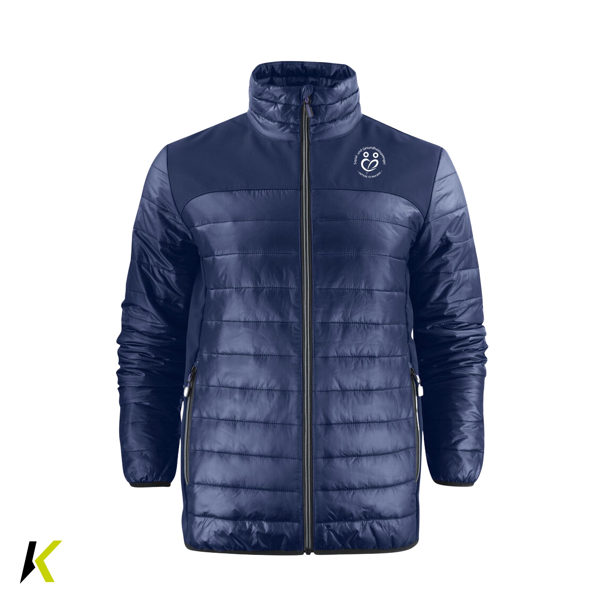 Wattierte Steppjacke mit Softshell Einsätzen über den Schultern und an den Seiten. Zwei Aussentaschen mit Reißverschluss, innen zwei meshgefütterte Beuteltaschen. Elastisches Band als Abschluss an Saum und Ärmel. Farben, Reißverschlüsse, Zipper Puller sind passend zu allen Essentials Artikel.